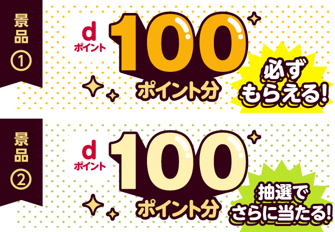 ・本キャンペーンでの当選ポイントの受け取りはdポイントクラブ会員の方が対象となります。(ドコモビジネスメンバーズ会員の方は対象外となります。)